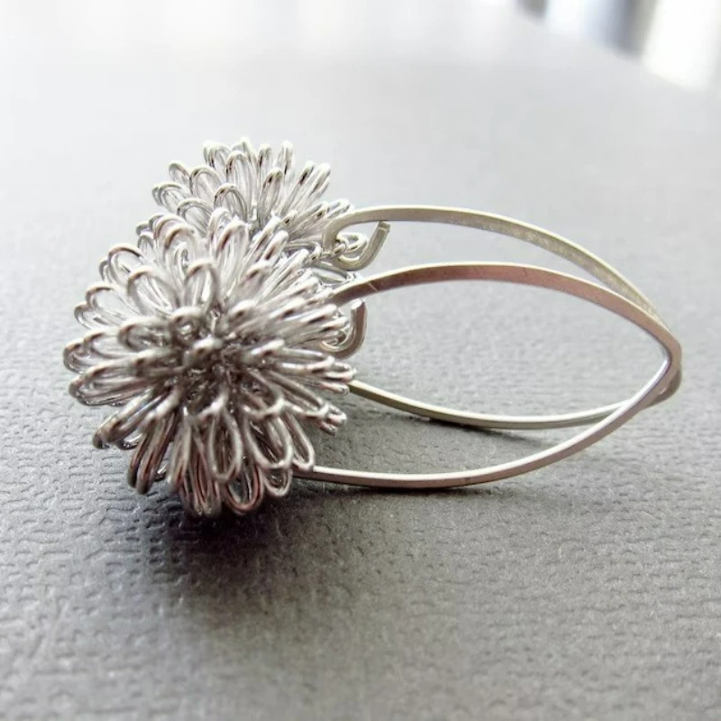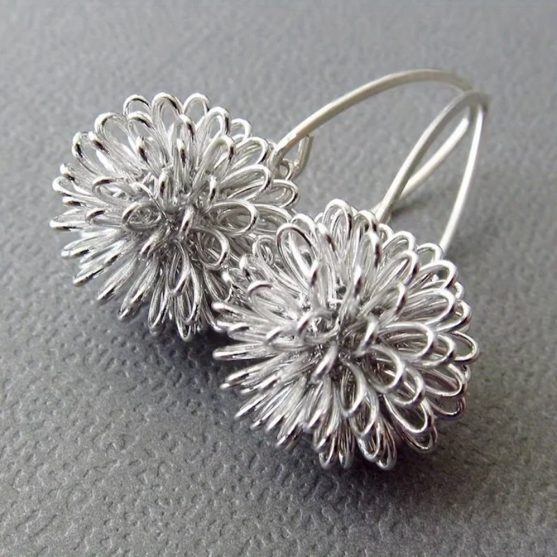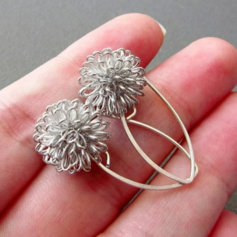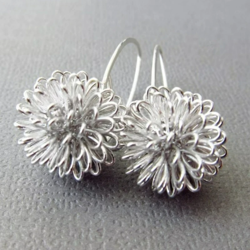 Earrings Dahlia Earrings Silvery Modern Design Silvery Wire Ball Earrings - Similar To Dandelion Earrings Unique Earrings