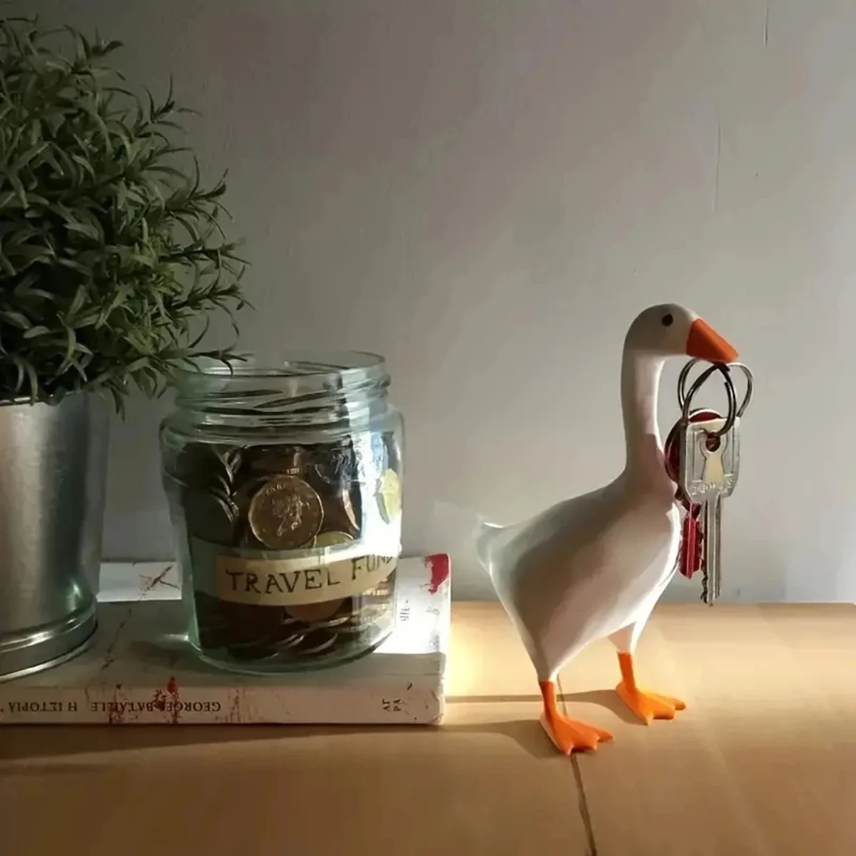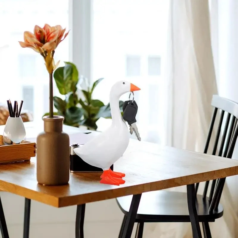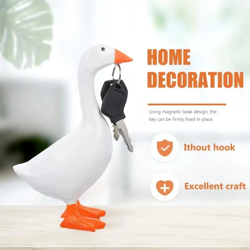 1Pcs Key Hooks Resin Goose Statues Storage Rack Home Decor Ornaments Standing Holder Magnetic Glass 3D Gifts Bedroom Decorations