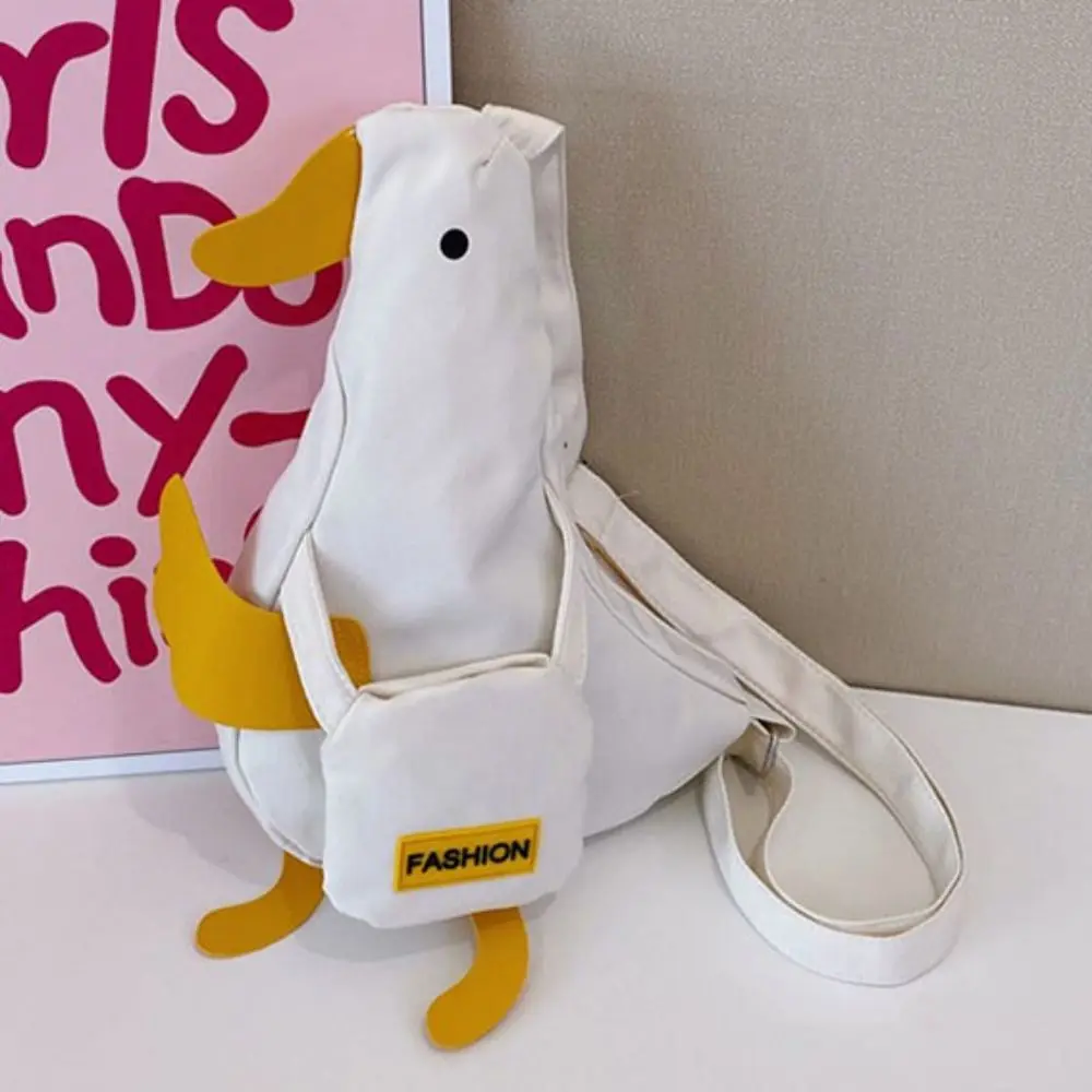 Lovely Canvas Funny Goose Duck Crossbody Bag Korean Style Minority Design Goose Duck Shoulder Bag Novetly Cartoon Chest Bag Travel