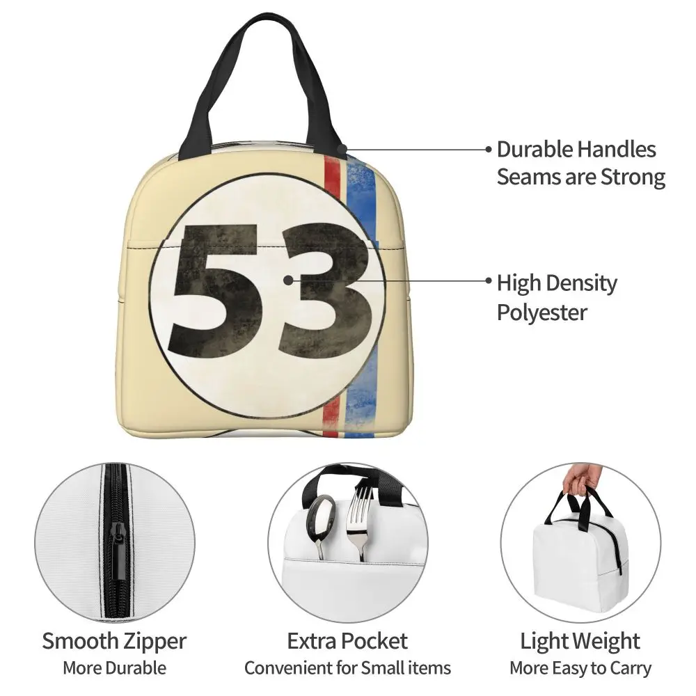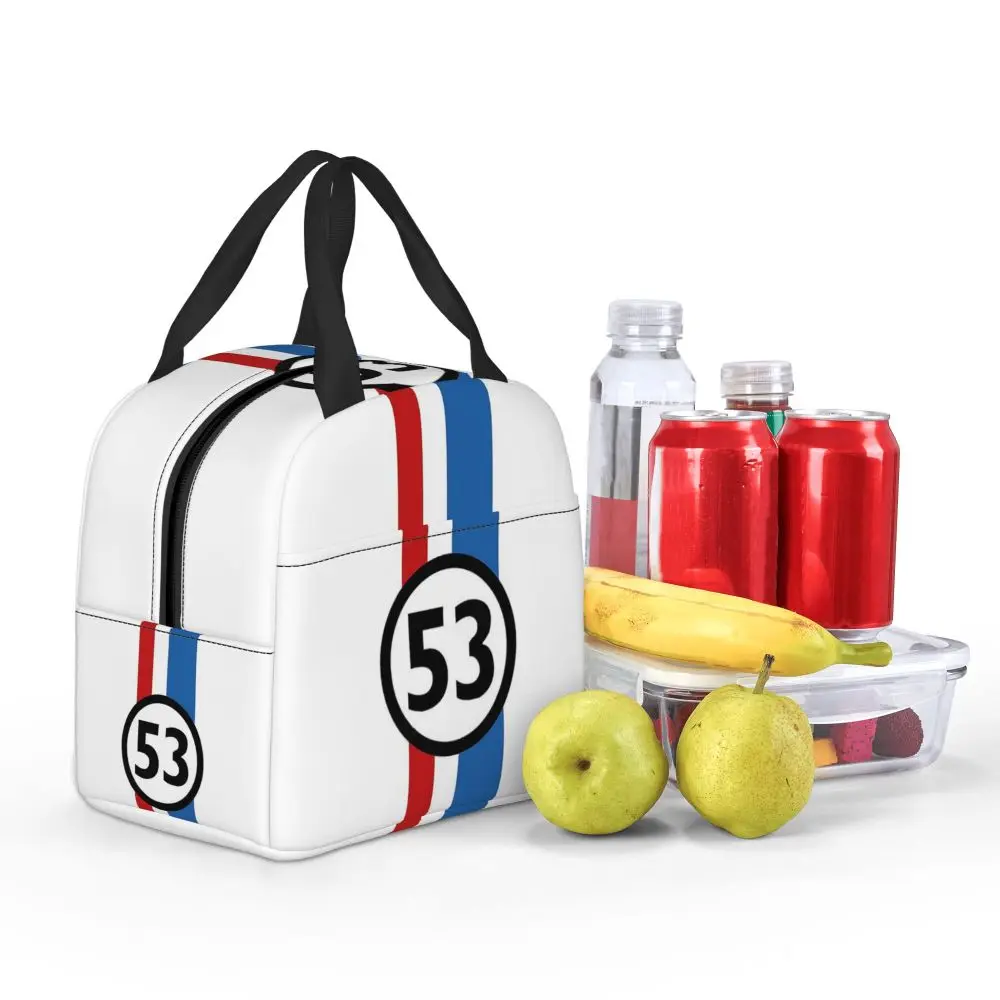 Car Number 53 Lunch Bags Insulated Bento Box Portable Lunch Tote Resuable Picnic Bags Cooler Thermal Bag for Woman Girl