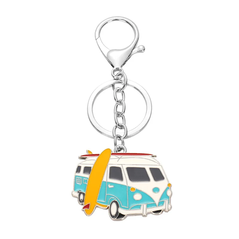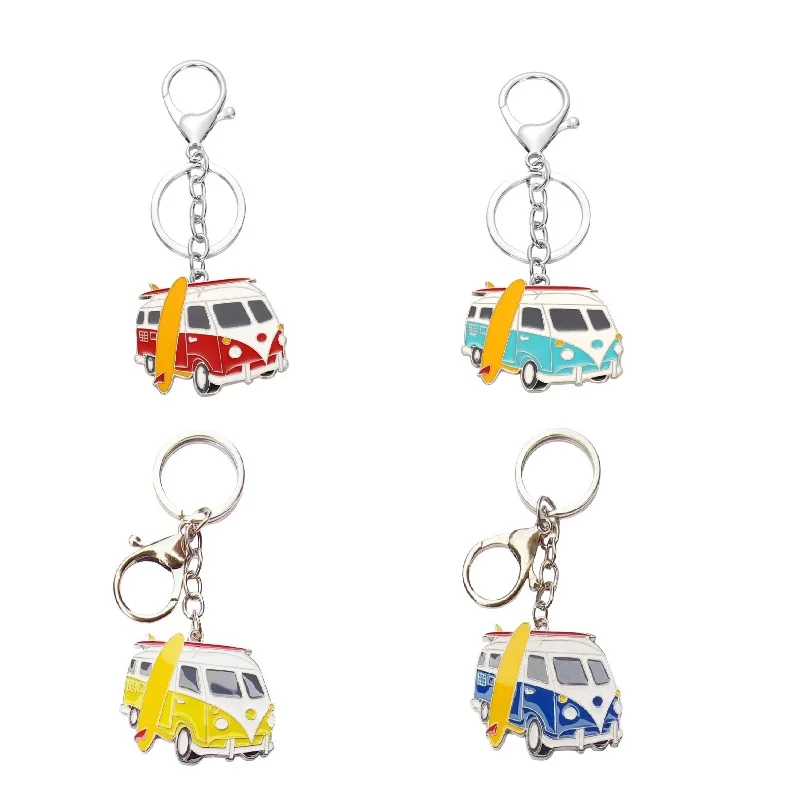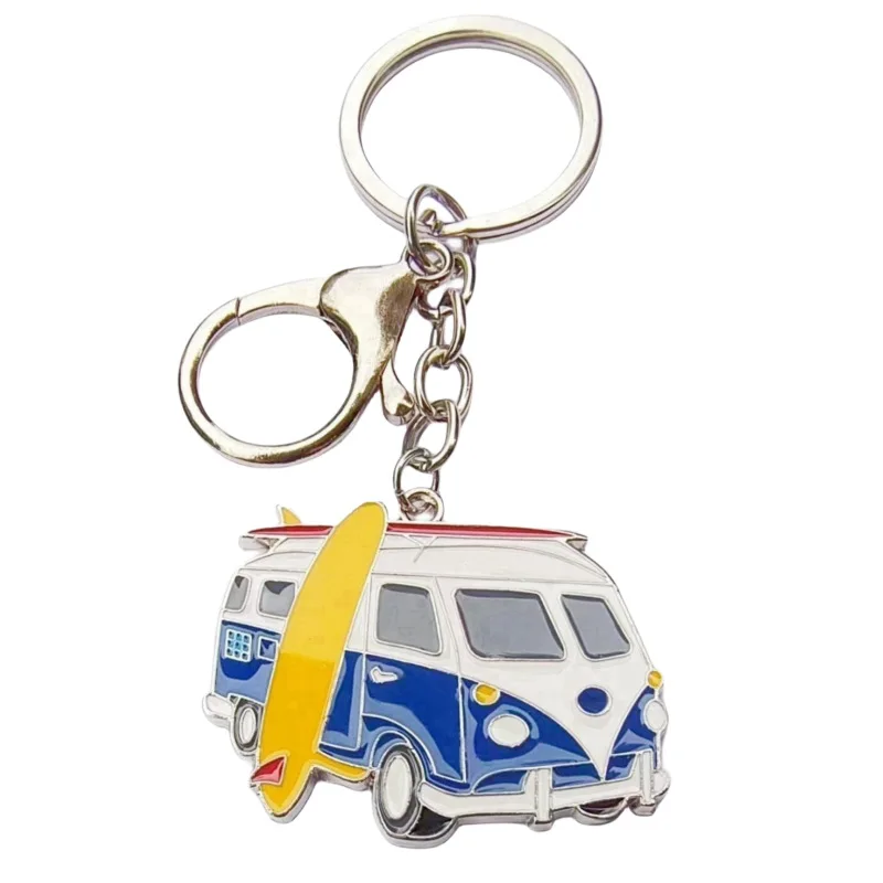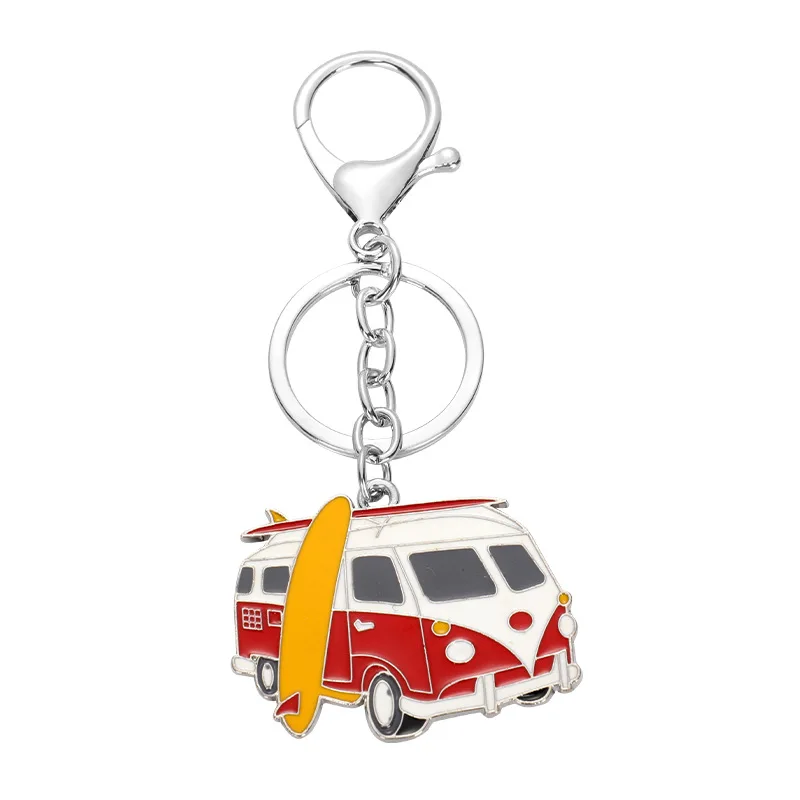 Creative Metal cartoon car Keychain Fashion bus bus Model I love camping keychains