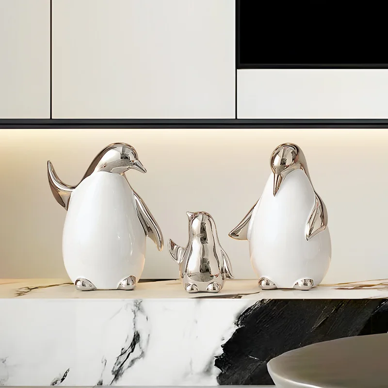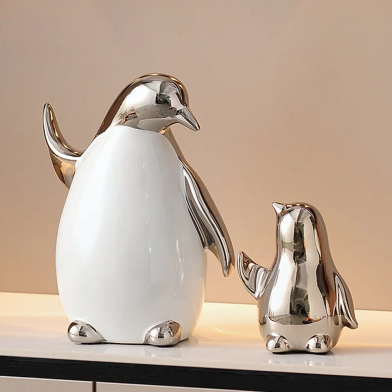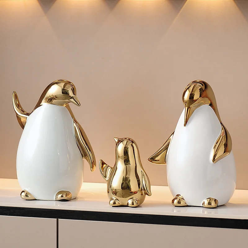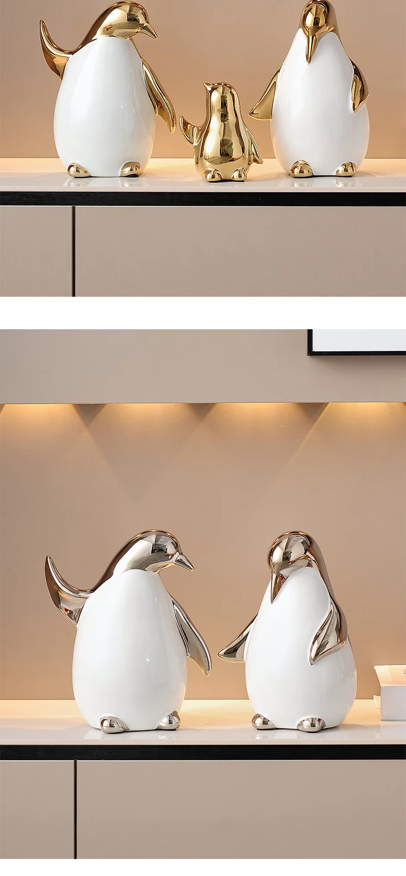 Creative Animal Cartoon Ceramic Figurines Golden Penguin Decoration Little Penguin Sculpture Ceramic Craft Home Decor Accessorie