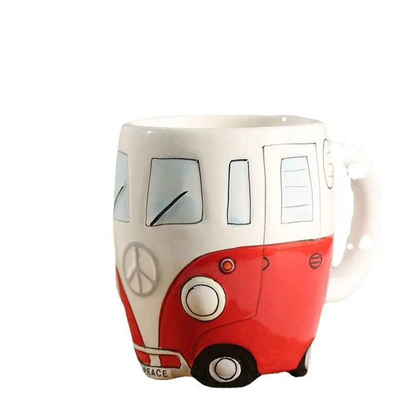 Creative Hand Painting Double Bus Mug Cartoon Ceramic Milk Tea Water Coffee Mugs Home Office School Drinkware Cup Novetly Gifts