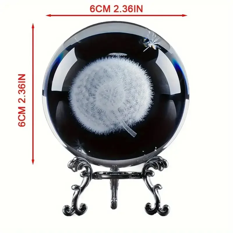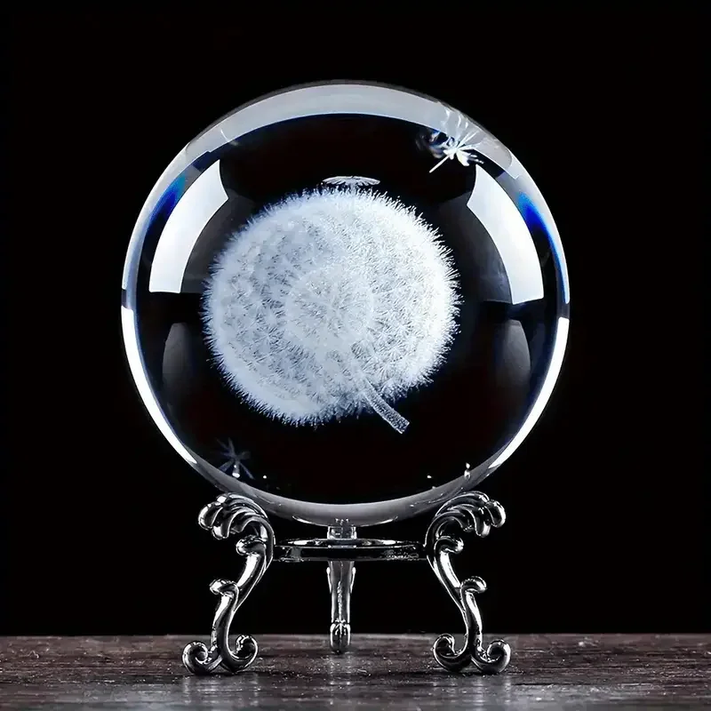 The 3D engraved dandelion crystal ball offers a unique and intricate design, adding a touch of elegance to any room.