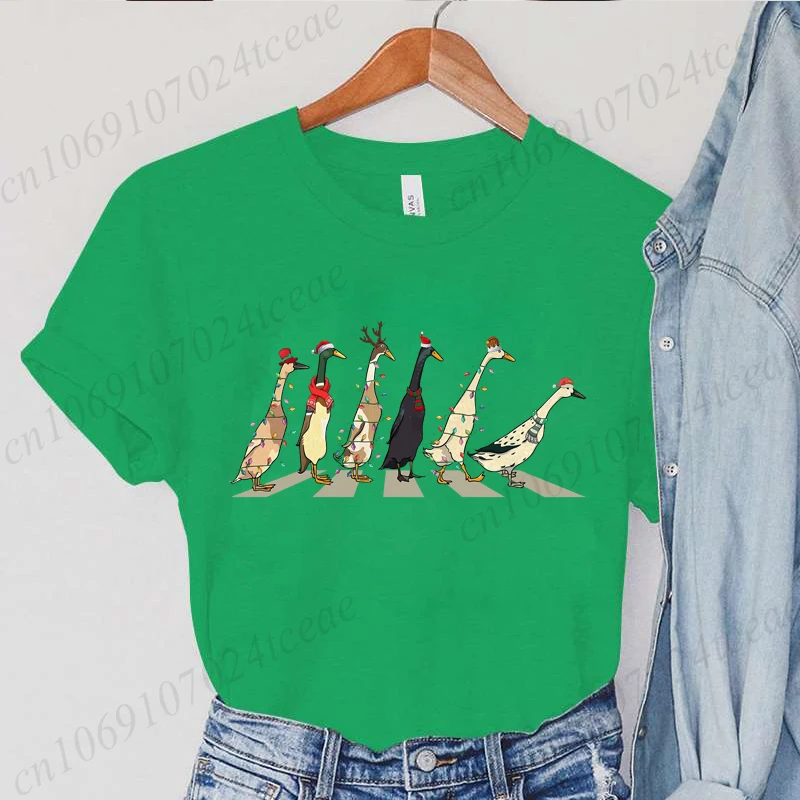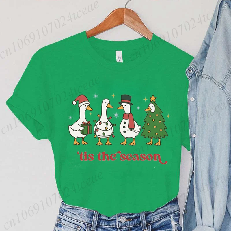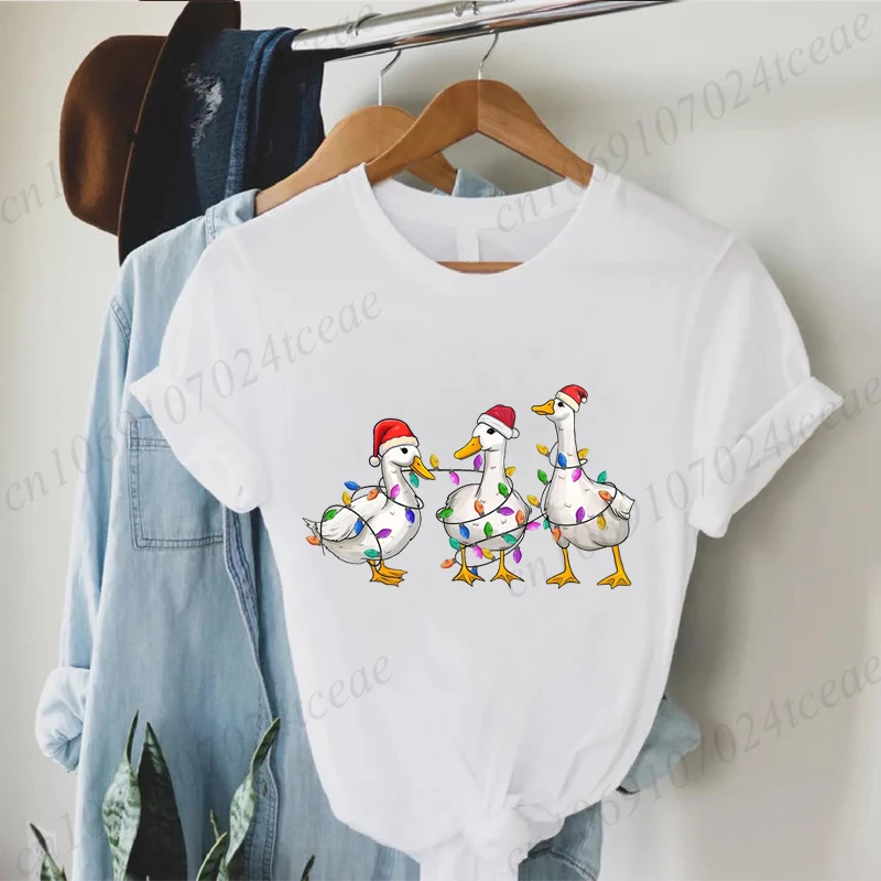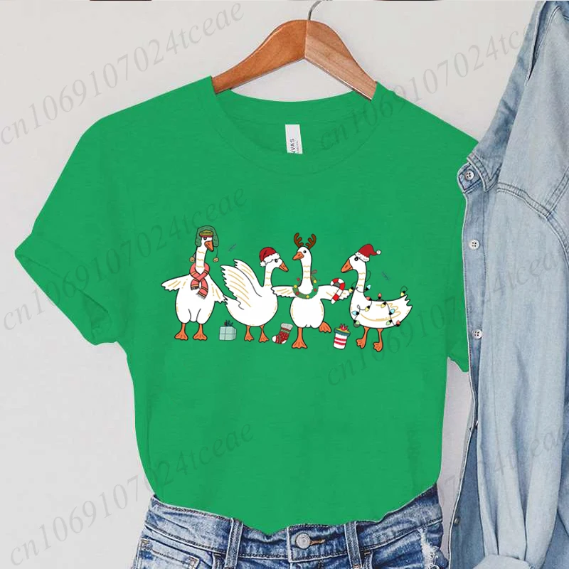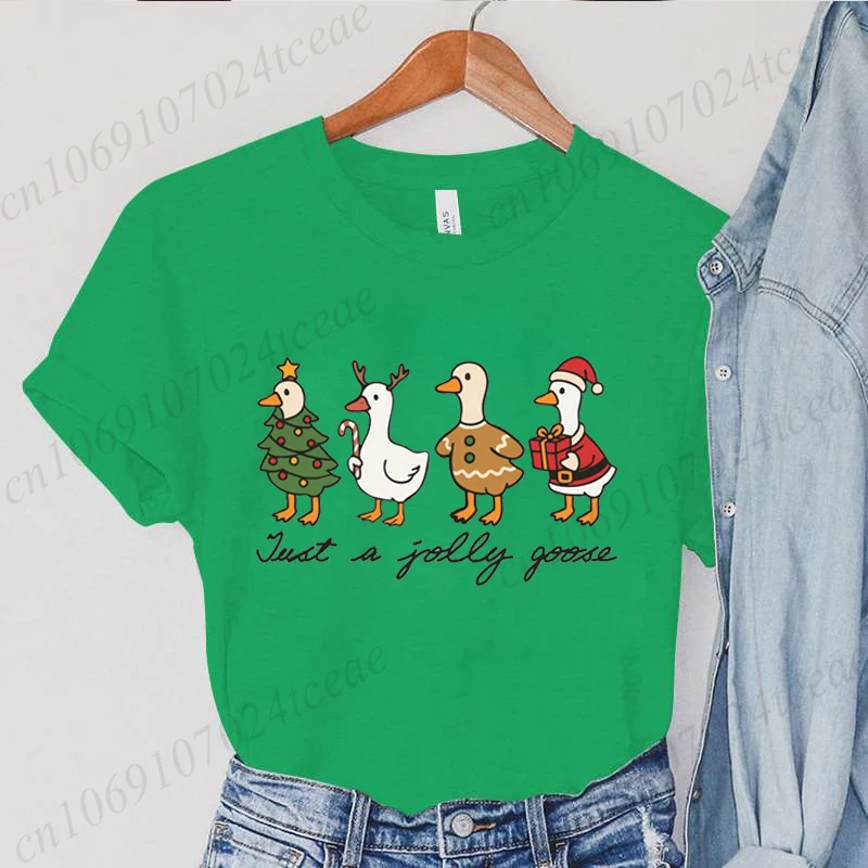 Fashion Funny Just A Goose Duck Xmas Print T-shirt Women Short Sleeve T-shirts Christmas Goose Unisex Summer Women's Clothing