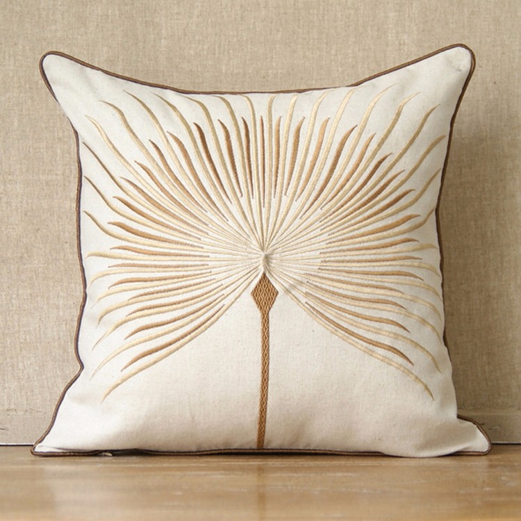 Linen and cotton cushion cover with dandelion embroidery for home decoration, cushion cover for sofa, high fashion