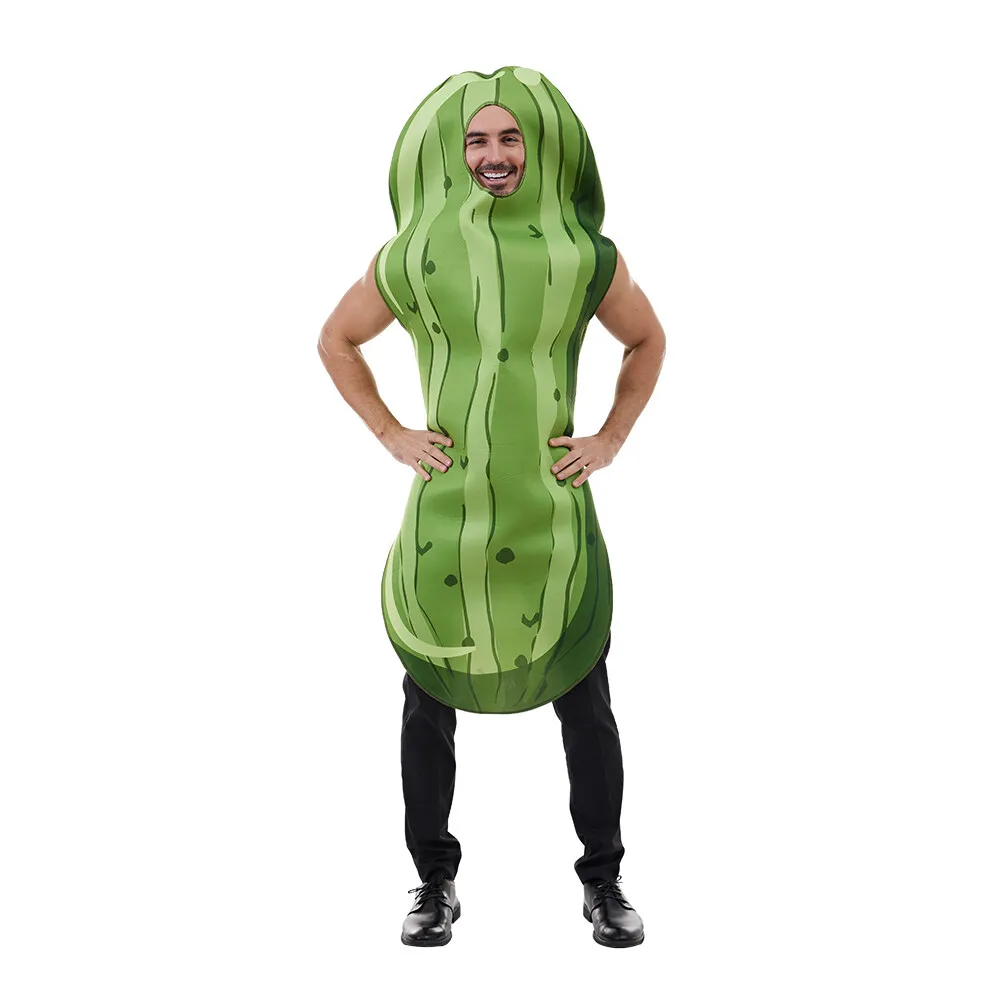 Funny Green Cucumbers Vegetable Halloween Pickle Costume Easy Pull On Costume for Men Carnival Easter Purim Fancy Dress