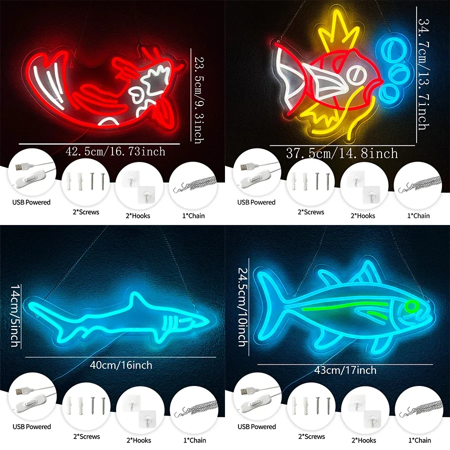 Used For Decor In Game Rooms, Fishing Equipment Stores And Clubs,Fish Series Neon Signs, Shark And Goldfish Personality Icons