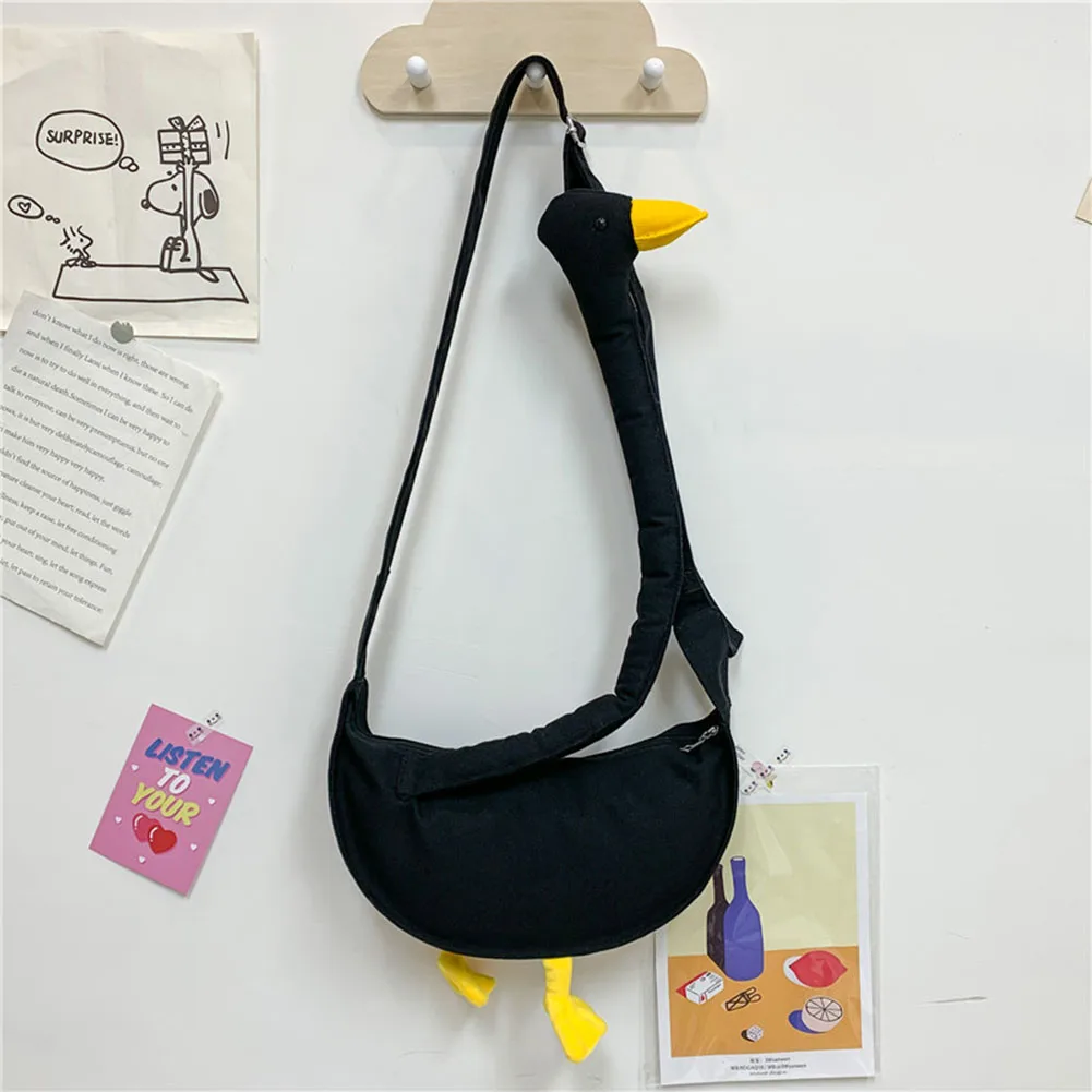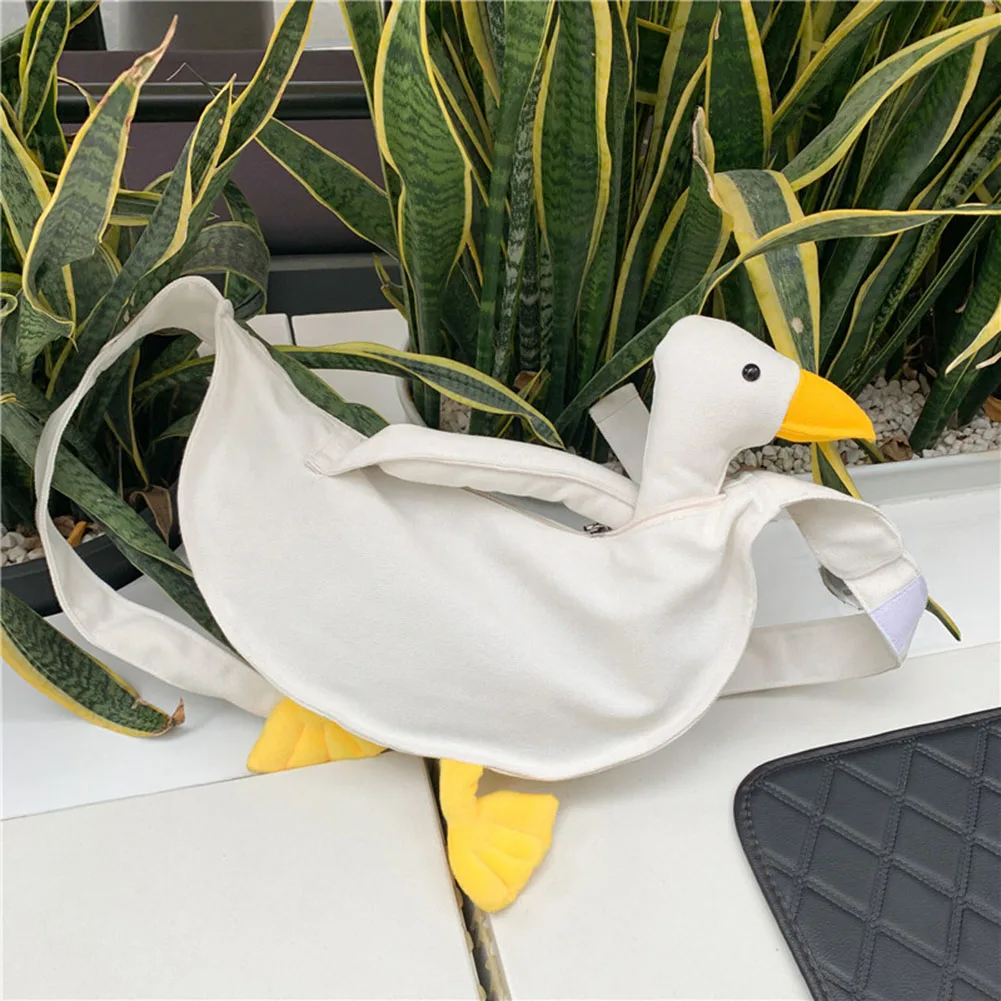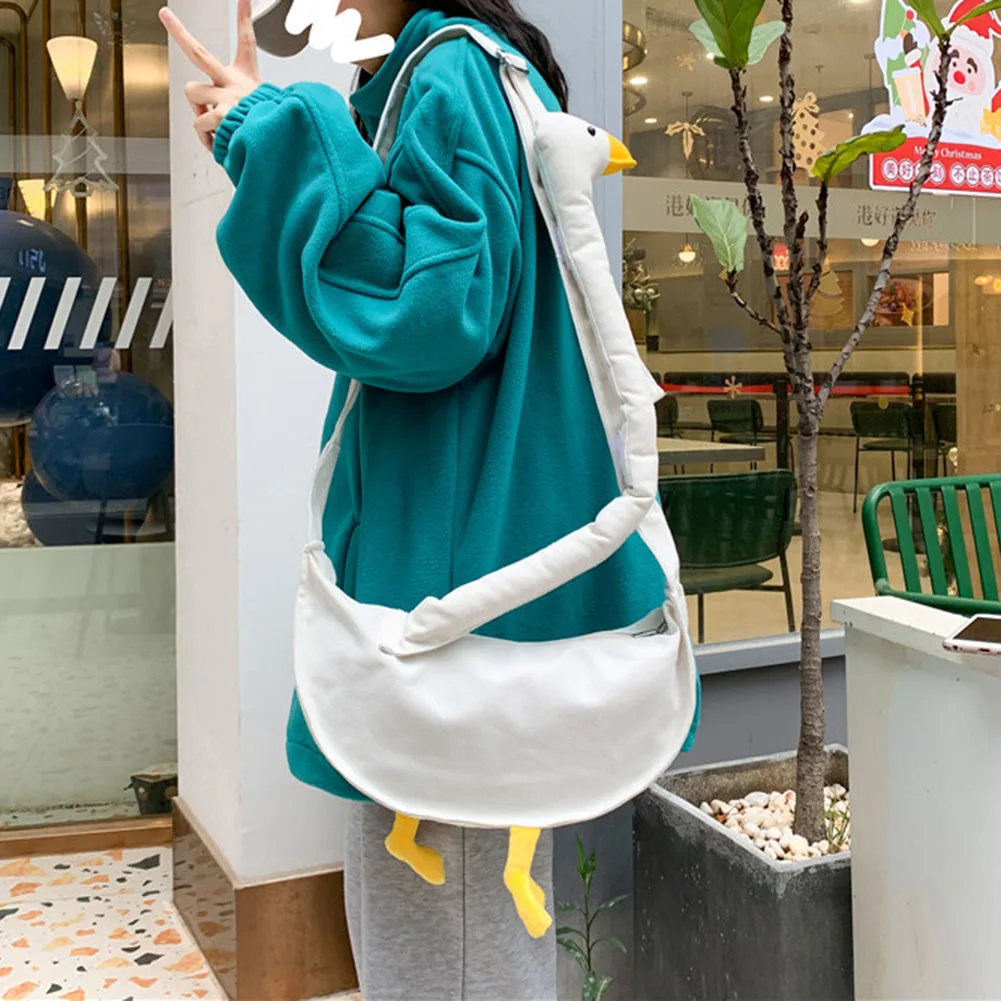 Women Cute Shoulder Bag Adjustable Strap Canvas Cartoon Goose Bag Large Capacity Funny Goose Shoulder Bag Daily Bag for Girls