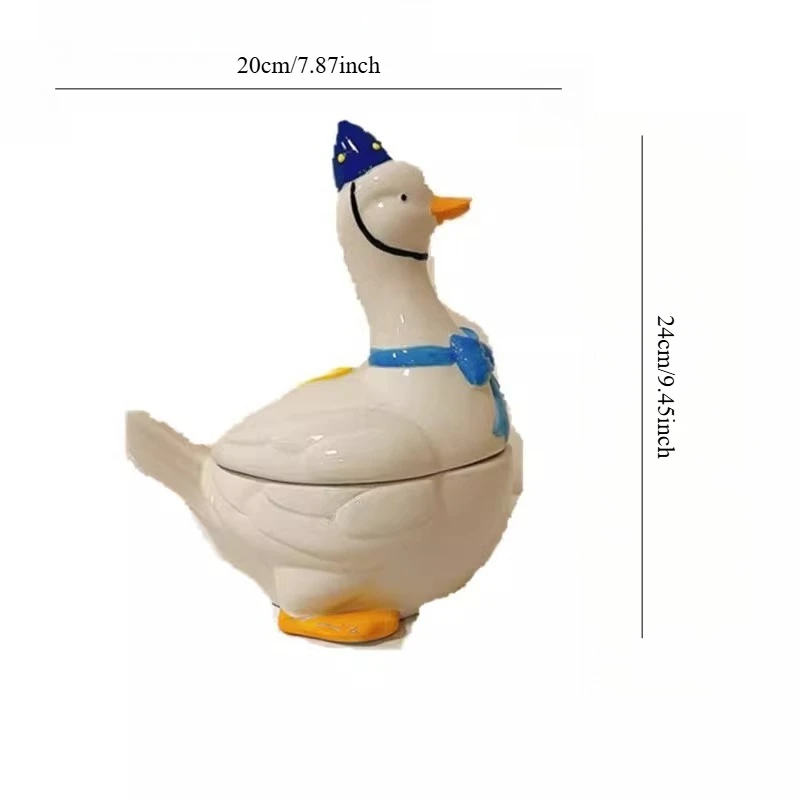 Cute goose duck shaped ceramic storage jar,covered ceramic bowl,foyer storage,living room coffee table snacks candy decoration jar