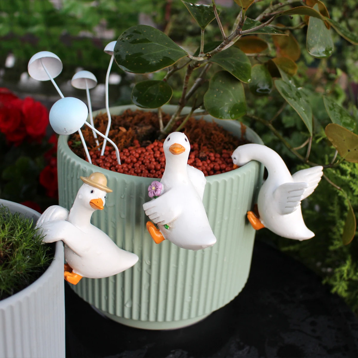 3 goose duck pendants, garden bonsai decoration animal pendants, resin handicrafts